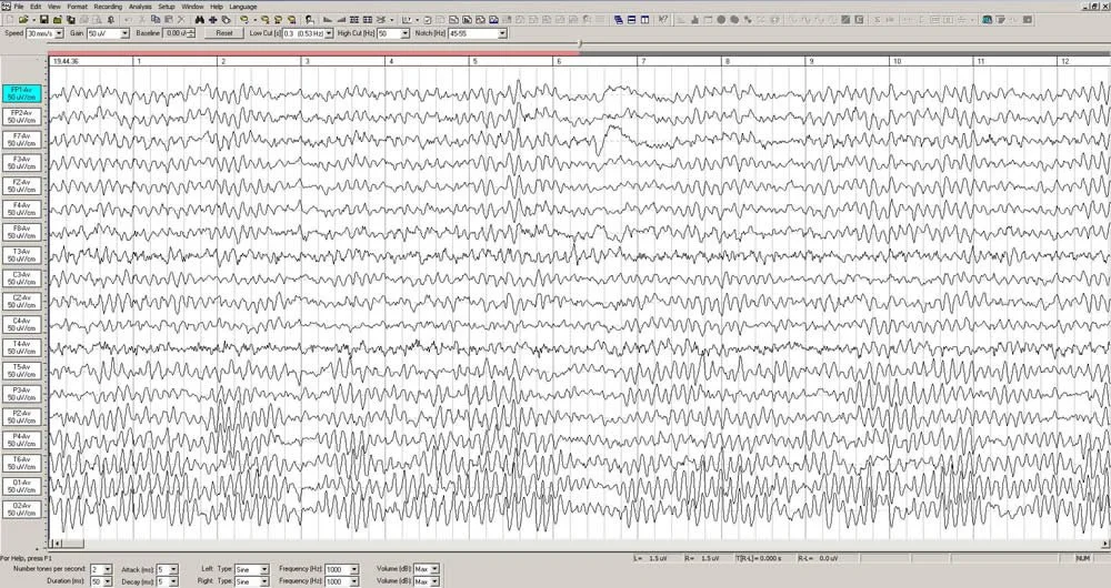 The process begins with a 19 channel EEG recording done in the office. This requires the use of an electrode cap and careful procedures to insure that the quality of the recording is sufficient.